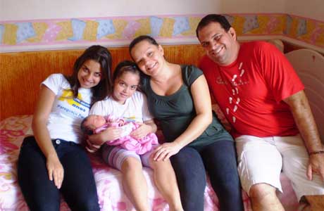 Familia reunida: Gi, Sofia com Nicole no colo, a mamãe Giovanna e o papai Renato