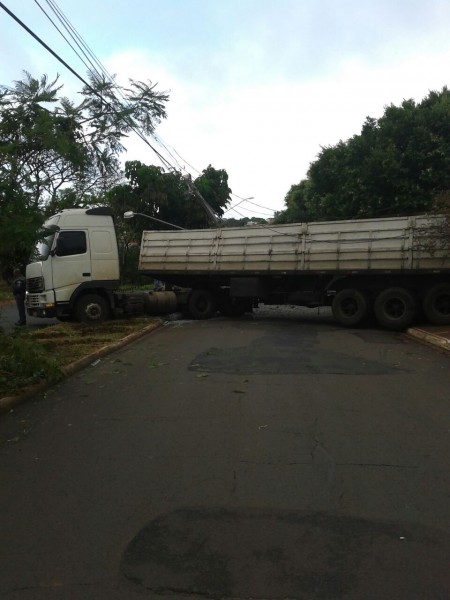 Carreta colide em casa e derruba poste após ter problemas mecânico em Assis