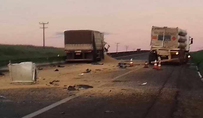 Caminhão com milho bate na traseira de outro com hidrogênio em Palmital