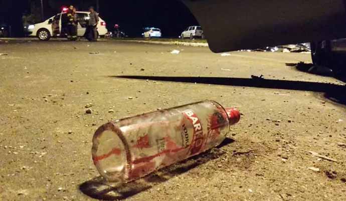 Garrafa de bebida alcoólica foi encontrada no local do acidente (Foto: Gabriel Tedde/ Marília Notícias)