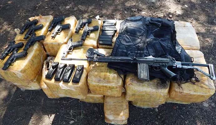 Além da droga, foram apreendidos um fuzil e 10 pistolas de 9 mm.