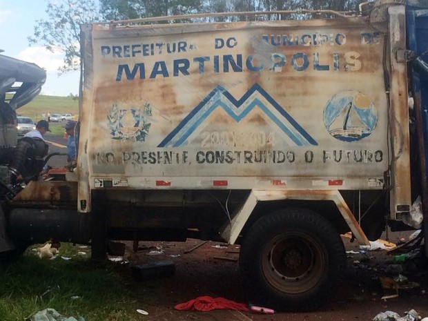 O caminhão pertence à Prefeitura de Martinópolis e parte da carga de lixo que carregava ficou espalhada na pista.