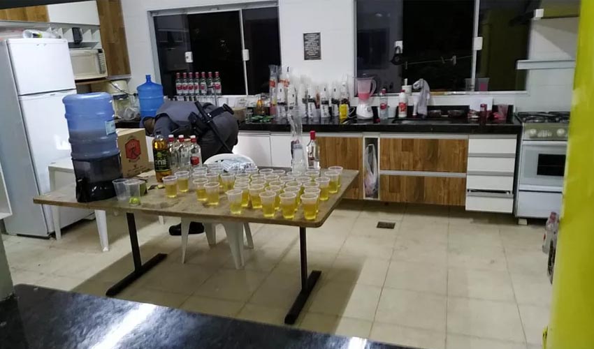 Logo após a chegada dos fiscais e dos policiais militares, que encontraram na cozinha da chácara uma grande quantidade de bebida alcoólica, em garrafas e já preparada em copos para venda, os jovens foram orientados a deixar o local, muitos deles carregando coolers ou geladeiras de isopor com bebidas.