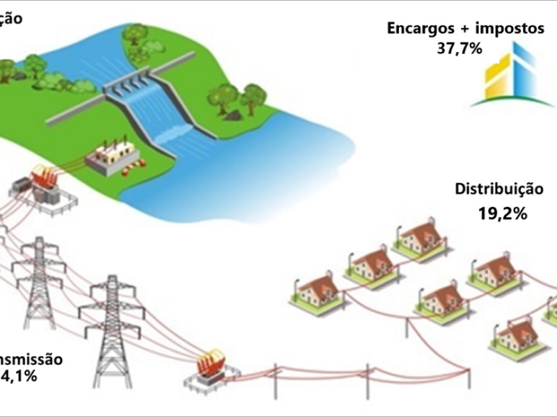 Os demais componentes da fatura são distribuídos da seguinte forma: 29% vão para as empresas geradoras de energia, 14,1% para as transmissoras, que transportam a energia até as subestações, 17,2% para encargos setoriais e 20,5% são impostos destinados aos governos federal, estadual e municipal, incluindo a Contribuição de Iluminação Pública, repassada às prefeituras. Adicionalmente, há os valores das bandeiras tarifárias, sendo que, em julho, a bandeira será amarela, com um acréscimo de R$ 1,88 a cada 100 kWh consumidos.