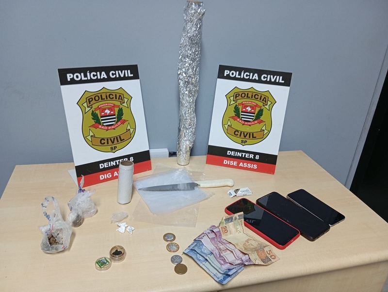 Durante o cumprimento de mandado de busca domiciliar autorizado pela Justiça, os policiais encontraram maconha, haxixe, cocaína, dinheiro trocado e apetrechos usados para preparo e venda de entorpecentes. No local também estavam duas adolescentes, de 15 e 16 anos, que foram resgatadas e entregues ao Conselho Tutelar de Assis.