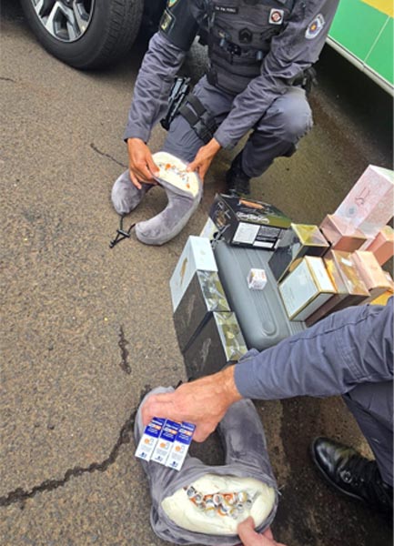 Na sequência, durante a inspeção no bagageiro do ônibus, foi constatada ainda uma grande quantidade de mercadorias oriundas do Paraguai, todas desprovidas de documentação fiscal, caracterizando o crime de descaminho.