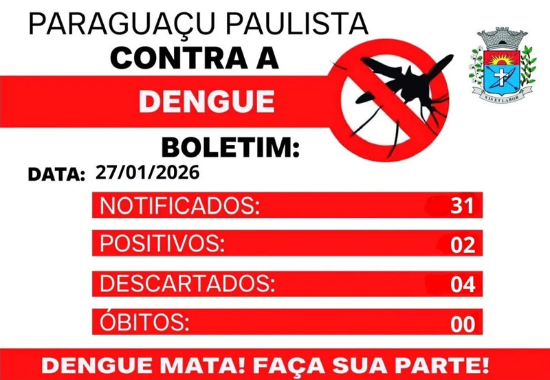No primeiro boletim de casos de dengue no município, a Secretaria de Saúde da Prefeitura de Paraguaçu Paulista informa à população que até agora foram registrados dois casos confirmados da doença, enquanto quatro casos suspeitos foram descartados. Ao todo, foram 31 notificações até agora.