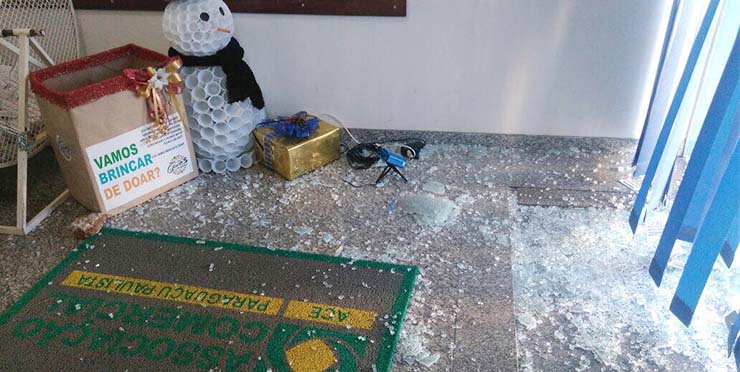 Como consta no boletim de ocorrência, um policial militar realizava patrulhamento pela Rua Sete de Setembro, no centro da cidade, e ao passar em frente ao prédio da ACE avistou que a porta de blindex estava estourada.