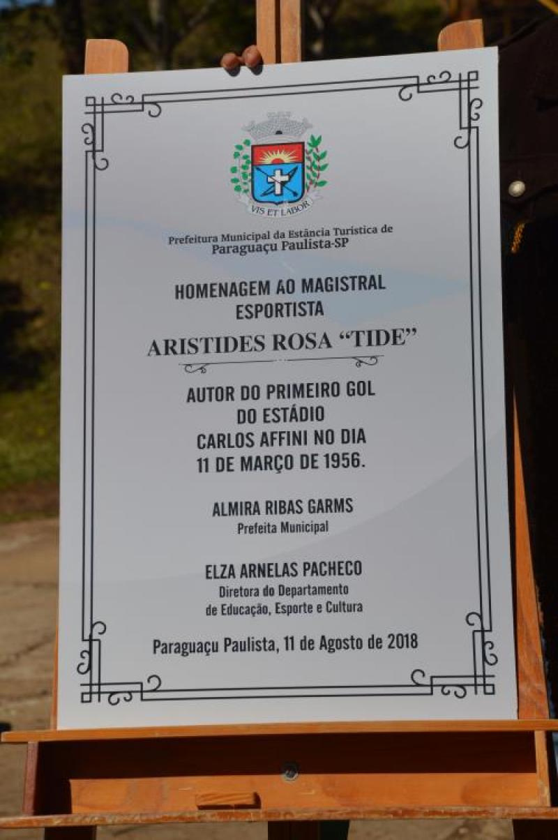 Autor do primeiro gol do estádio municipal “Carlos Affini”, Aristide Rosa, o Tide, foi homenageado pela Prefeitura de Paraguaçu Paulista, por meio do Departamento de Cultura, Educação, Esporte e Lazer, no último sábado (11). O gol foi marcado por Tide por ocasião da inauguração do estádio municipal Carlos Affini, em 11 de março de 1956.