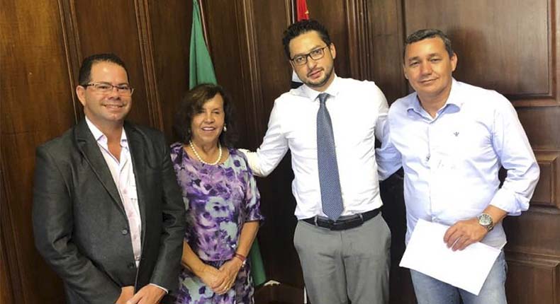 Clemente Júnior, Almira Garms e Serginho com o Secretário Marco Vinholi
