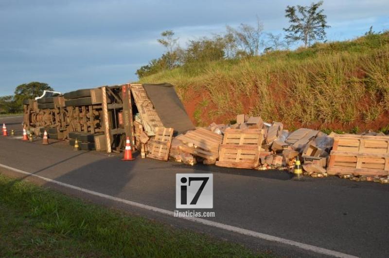 Uma carga de óleo vegetal ficou espalhada pela rodovia após o caminhão que a transportava tombar, na manhã desta quinta-feira, dia 09, em Paraguaçu Paulista (SP). O motorista sofreu ferimentos leves.