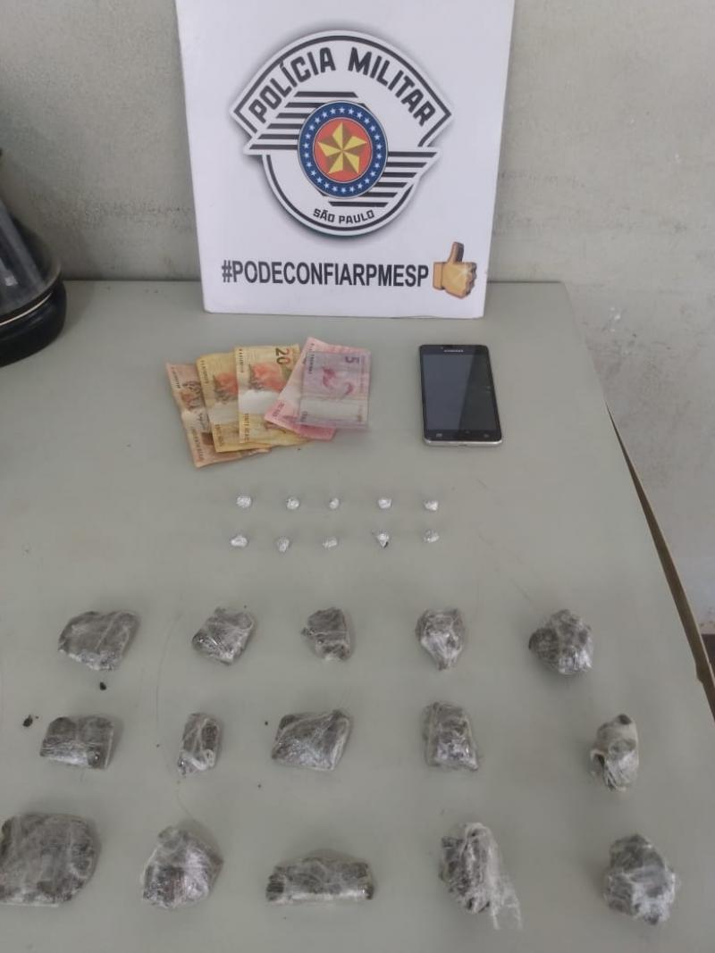 Após a denúncia, os policiais conseguiram localizar e prender os acusados. No quarto de um deles, foram encontradas 10 pedras de crack embaladas, 15 tabletes grandes de maconha e R$ 125,00 em dinheiro.
