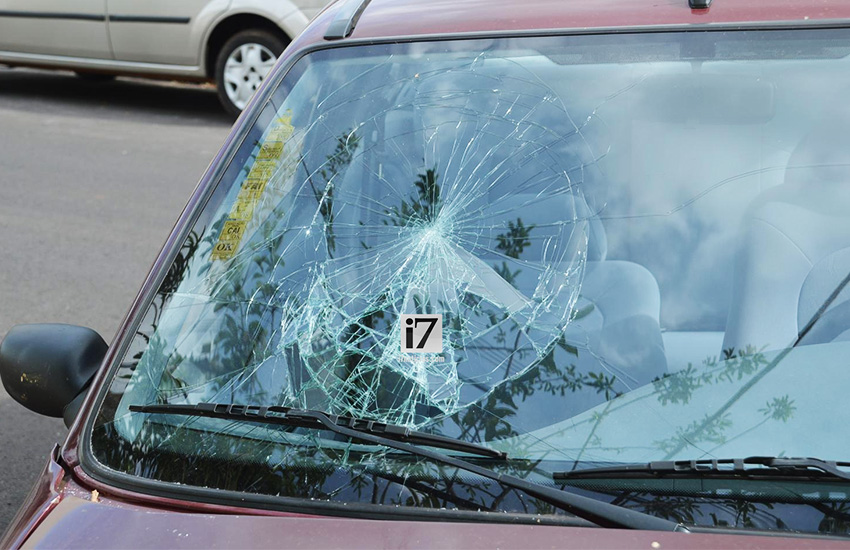 A motorista colidiu a cabeça contra o para-brisa do carro, que quebrou