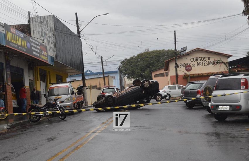 Um veículo capotou no centro de Paraguaçu Paulista na manhã desta quinta-feira, dia 10. A motorista não se feriu.