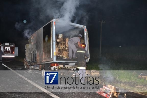 Mesmo com o incêndio sendo controlado rapidamente, o veículo e a maior parte da mercadoria que estava transportando ficaram destruídos.