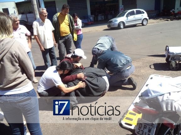 Um motociclista sofreu duas fraturas na perna esquerda após se envolver em uma colisão, na manhã desta quarta-feira, dia 25, por volta das 10h15, na Rua Conceição de Monte Alegre, em frente ao Supermercado Bom Preço.