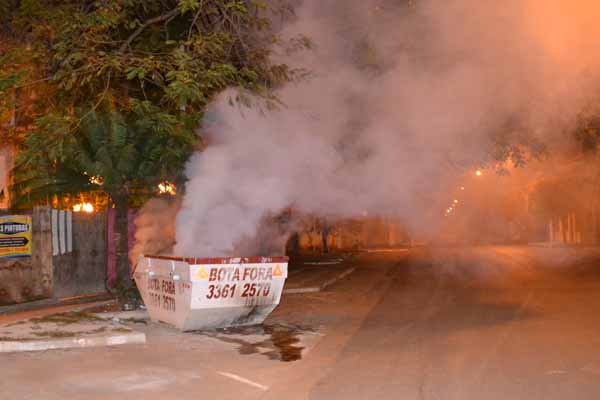 Na madrugada deste sábado, dia 16, por volta da 1h, vândalos atearam fogo em uma caçamba que está localizada na Rua Santos Dumont, e está servindo para o depósito de restos de materiais utilizados na reforma do prédio que abrigará a 2ª Companhia da Polícia Militar.