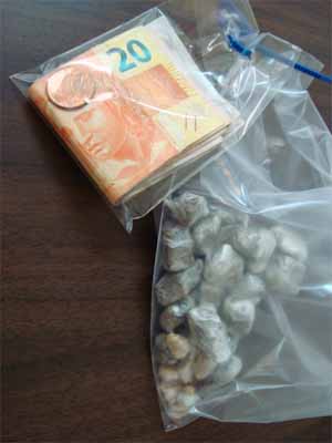 Foram apreendidos com eles quatro tijolos de maconha, quatorze pedras de crack, vinte e uma porções de maconha, um notebook e a quantia de R$ 103,00.