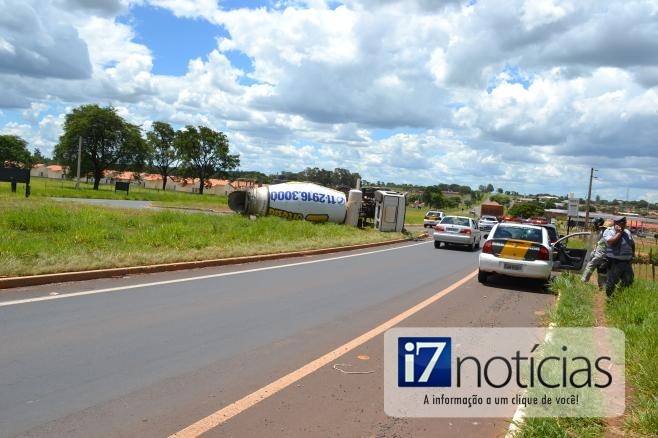 Por volta das 13h30 de ontem, dia 26, um caminhão carregado de concreto tombou na Rodovia Manílio Gobbi, em Paraguaçu Paulista.