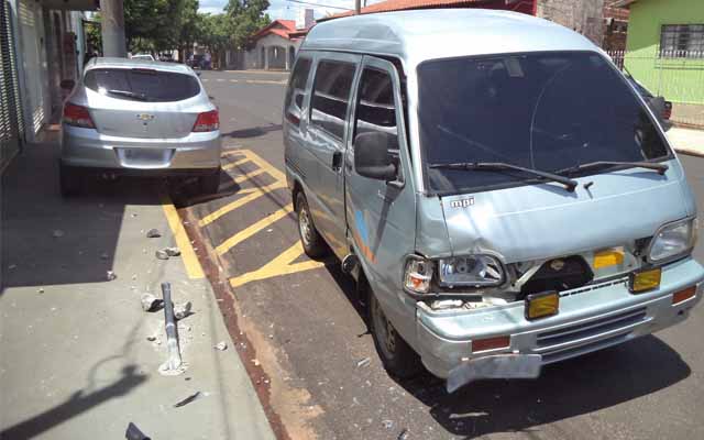 O veículo parou apenas após colidir contra um poste de transmissão de energia elétrica