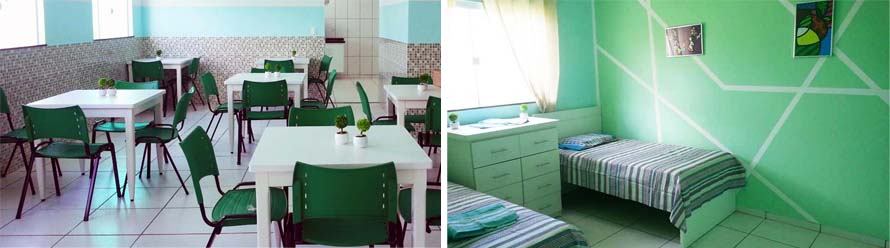 - Quartos com TV de LED; ar condicionado quente e frio; cômoda com gavetas individuais; decoração alegre e descontraída; camas apropriadas com colchões, lençóis e travesseiros antialérgicos.