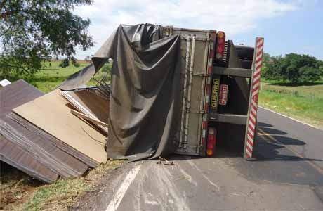 Uma carreta carregada de placas de MDF tombou na manhã desta quinta-feira, dia 19, por volta das 8h30, em uma vicinal na saída de Quatá. O motorista do veículo, o quataense Rildo Barbosa, saiu ileso.