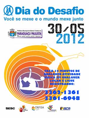 Na quarta-feira, 30 de maio, acontece, em todo o mundo o Dia do Desafio 2012, uma realização coordenada pelo Sesc-SP no continente americano e realizado, em Paraguaçu Paulista, pela Prefeitura Municipal.