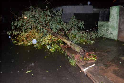 Na Rua Ceará, no Jardim Murilo Macedo, o Corpo de Bombeiros também registrou a queda de uma árvore.