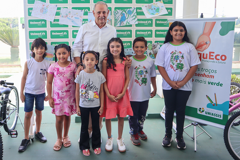 A Unimed Assis, em parceria com o Instituto UniAssis, realizou no dia 19 de novembro a entrega de 10 bicicletas a alunos finalistas do programa de educação ambiental RabisquEco. A iniciativa envolveu 5.000 estudantes de 34 escolas municipais, que participaram de uma gincana baseada nos conteúdos da Cartilha Meio Ambiente Kids. Ao longo do projeto, as crianças estudaram o material e produziram desenhos inspirados nos cuidados com a natureza e nas práticas sustentáveis.
